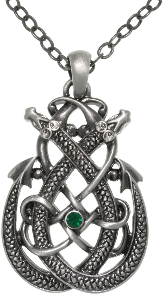 Jewelry Trends Pewter Celtic Dragon Teardrop Knot Dangle Earrings with Green Crystals
