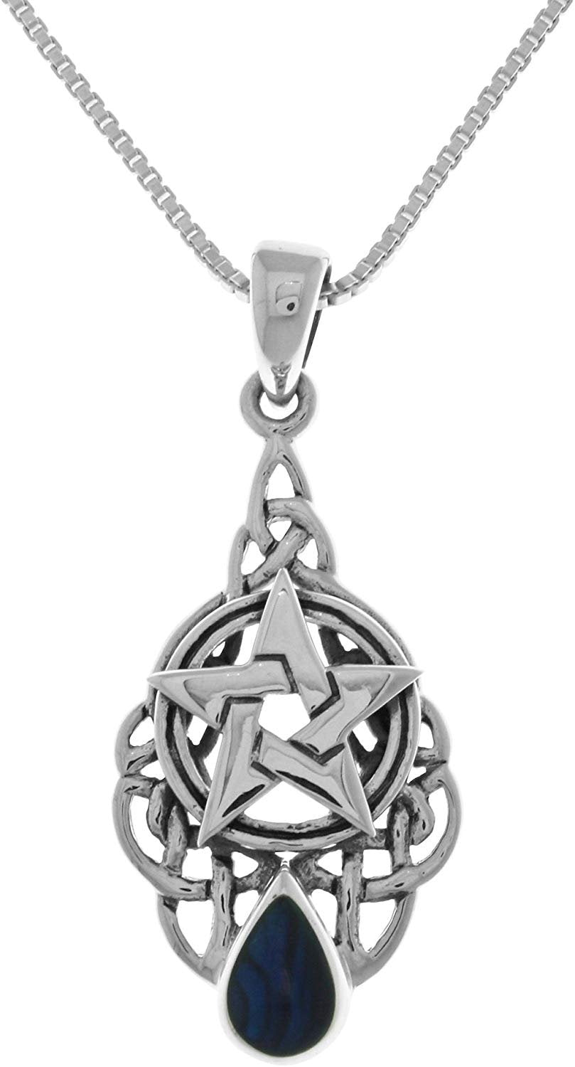 Jewelry Trends Sterling Silver Celtic Pentacle Star Pendant with Paua Shell on 18 Inch Chain Necklace